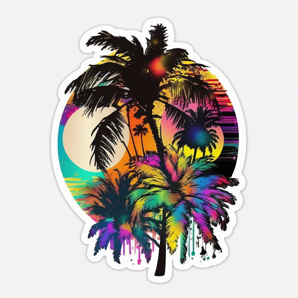 3 inch colorful fun summer palm tree vibes sticker.
